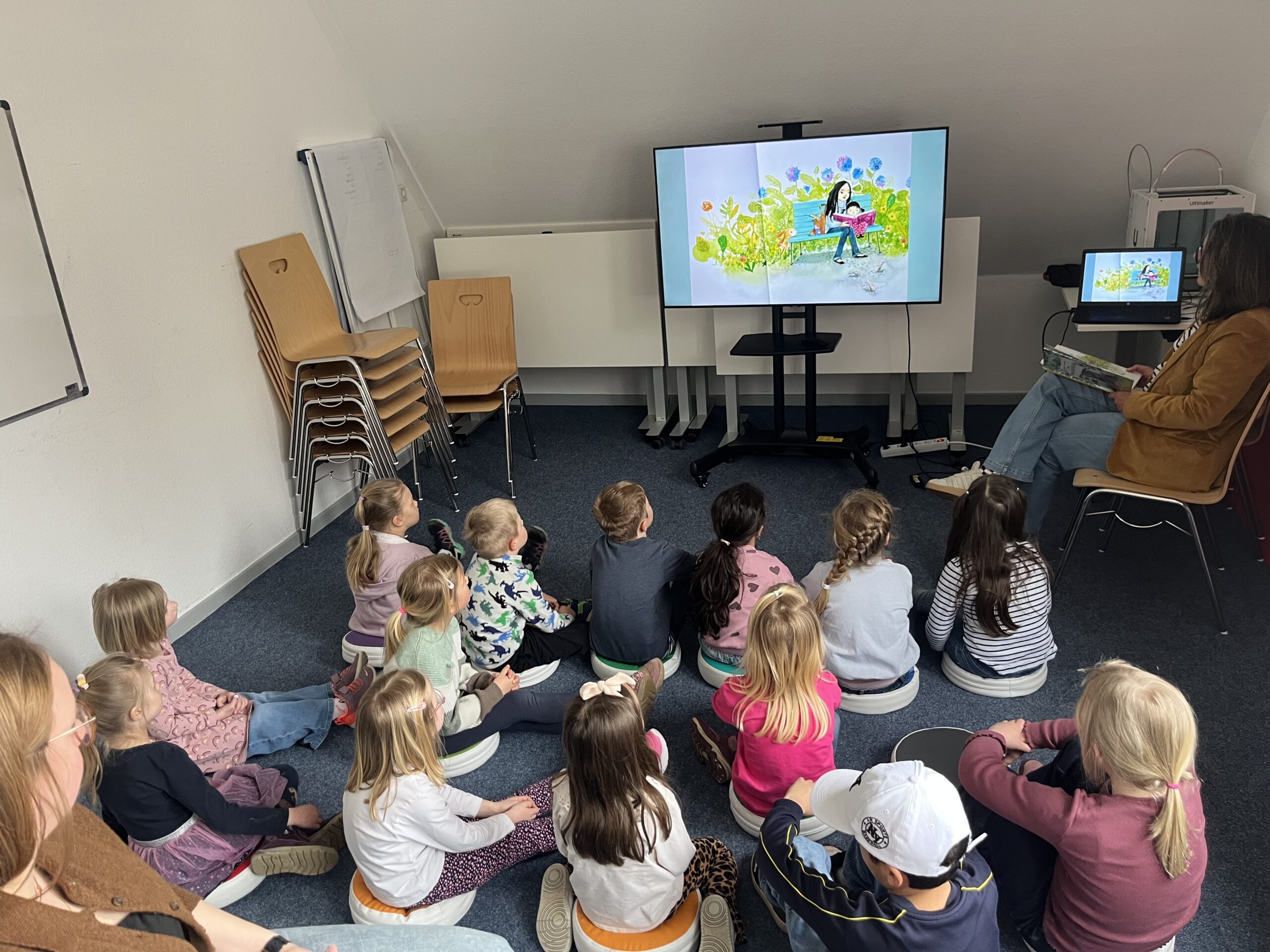 Wir besuchen die Stadtbibliothek und lernen Luca Leseratte kennen. Auch den Hasen aus der Bilderbuchgeschichte finden wir dort wieder und suchen seine Medienheldenfreunde. Draußen schauen wir uns die Rückgabeklappe an. Ein spannender Vormittag! Danke!